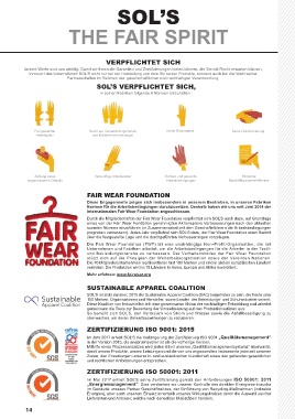 progressiv verbessern). Jedes Jahr verpfl ichtet sich SOL’S dazu, der Fair Wear Foundation einen Bericht