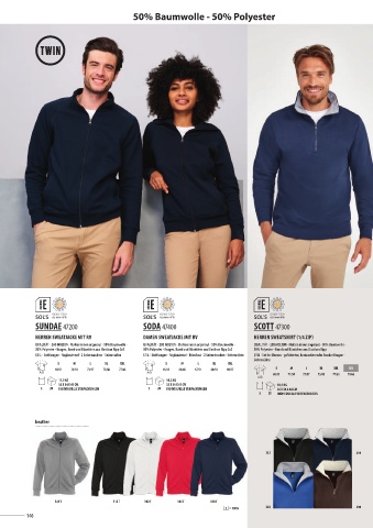 50% Polyester - Kragen, Bund und Bündchen aus Elasthan Ripp 2x2 50% Polyester - Kragen, Bund und Bündchen aus Elasthan Ripp 2x2 50% Polyester - Bund und Bündchen aus Elasthan Ripp