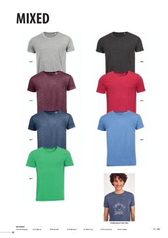 MIXED 350 T 348 T 144 T 163 T 322 T 236 T 262 T Ansichtsexemplar Print-T-Shirt SOL’S FARBEN 144 Heather burgundy 163 Heather red 236 Heather blue 262 Heather green 322 Heather navy 348 Charcoal melange 350 Grey melange 48
