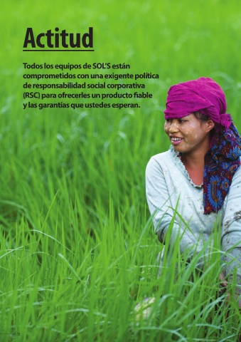 Actitud Todos los equipos de SOL’S están comprometidos con una exigente política de responsabilidad social corporativa (RSC) para ofrecerles un producto fi able y las garantías que ustedes esperan. 12