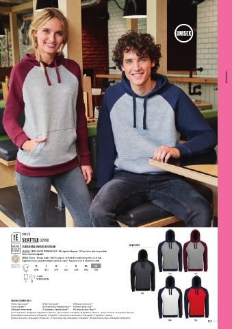 (1) Gris / azul marino : 75 % algodón / 20 % poliéster / 5 % viscosa - (2) Gris / burdeos : 75 % algodón / 20 % poliéster / 5 % viscosa - (3) Ash / Gris mezcla : 95 % algodón / 5 % viscosa