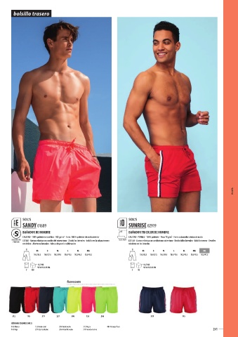 CALIDAD - 100% poliéster microfibra - 105 gr/ m - Forro: 100 % poliéster de malla interior CALIDAD - PONGEE - 100% poliéster - Peso: 70 g/m² - Forro: calzoncillo interior de malla