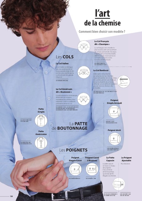 Le col italien se distingue par une ouverture de col beaucoup plus large et des pointes plus courtes qui lui confèrent une très grande élégance.
