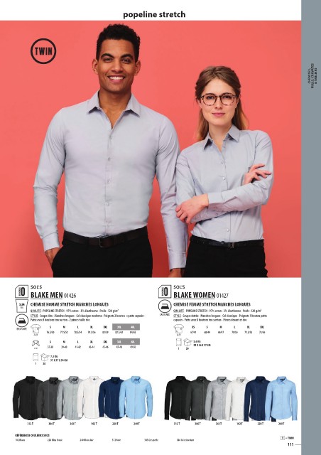 QUALITÉ - POPELINE STRETCH - 97% coton - 3% élasthanne - Poids : 120 g/m2 STYLE - Coupe slim - Manches longues - Col classique moderne - Poignets 2 bouton Patte avec 8 boutons ton sur ton - 2 pinces taille dos