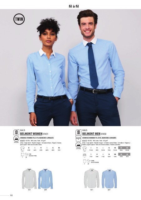 STYLE - Coupe cintrée - Manches longues - Col contrasté blanc - Poignets 1 bouton patte capucin - Patte avec 8 boutons blancs