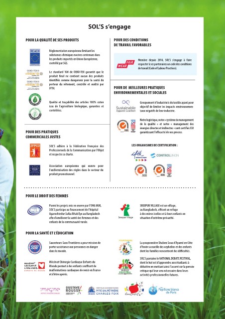 Membre depuis 2014, SOL’S s’engage à faire respecter à ses partenaires un code des conditions de travail (Code of Labour Practices).