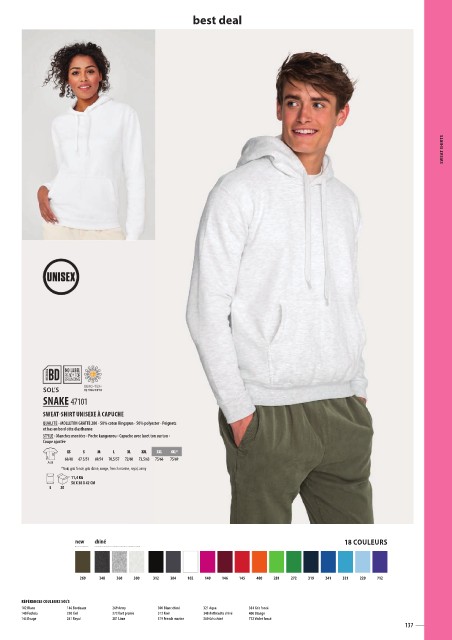 QUALITÉ - MOLLETON GRATTÉ 280 - 50% coton Ringspun - 50% polyester - Poignets et bas en bord côte élasthanne