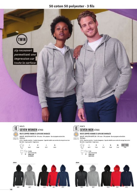 QUALITÉ - MOLLETON GRATTÉ 280 - 50% coton - 50% polyester - Bas et poignets en bord côte élasthanne
