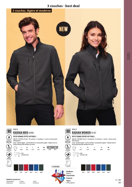 QUALITÉ - SOFTSHELL 270 g/m2 - 96% polyester - 4% élasthanne - 3 couches - Intérieur polaire 100% polyester