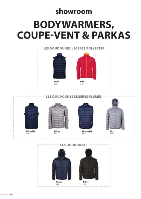 showroom BODYWARMERS, COUPE-VENT & PARKAS LES DOUDOUNES LÉGÈRES POLYESTER Wave Ride p 185 p 198 LES DOUDOUNES LÉGÈRES PLUMES Wilson BW Wilson Victoire BW Ray p 186 p 201 p 187 p 200 LES DOUDOUNES Reggie Ridley p 204 p 199 178