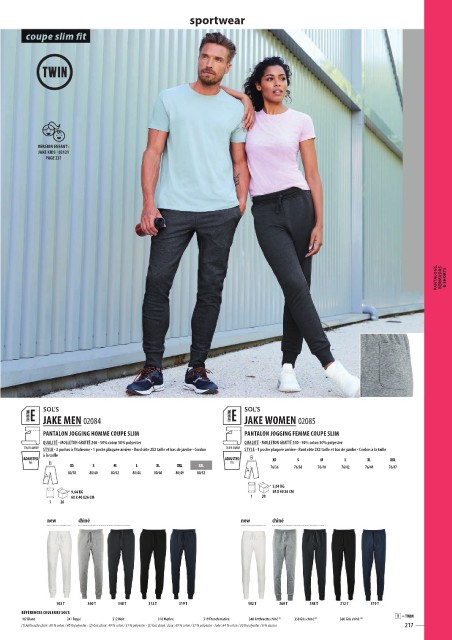 (1) Anthracite chiné : 60 % coton / 40 % polyester - (2) Gris chiné : 49 % coton / 51 % polyester - (3) Gris chiné : June : 69 % coton / 31 % polyester - Jake : 64 % coton / 30 % polyester / 6 % viscose