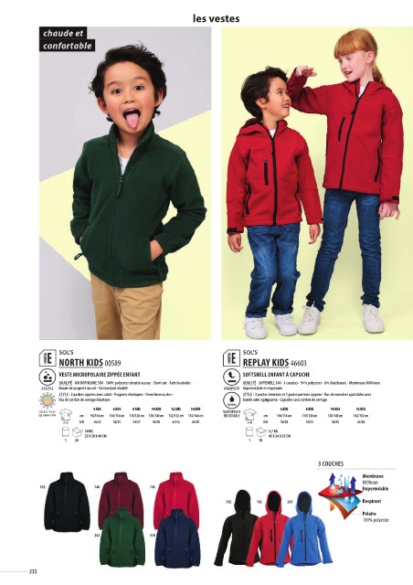 QUALITÉ - SOFTSHELL 340 - 3 couches - 94% polyester - 6% élasthanne - Membrane 8000 mm imperméable et respirante