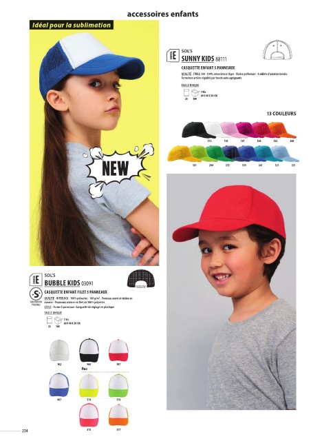 SUNNY KIDS 88111 CASQUETTE ENFANT 5 PANNEAUX