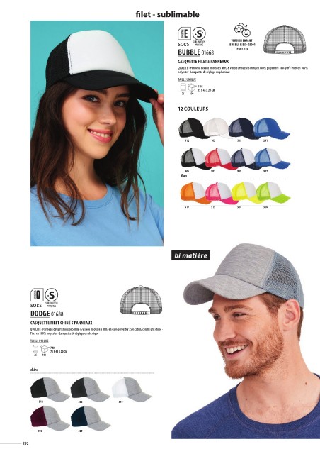 QUALITÉ - Panneau devant (mousse 5 mm) & visière (mousse 3 mm) en 100% polyester - 160 g/m2 - Filet en 100% polyester - Languette de réglage en plastique