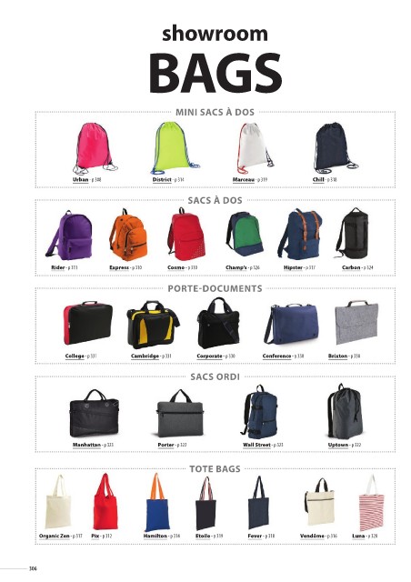 District- p 314 Marceau- p 319 Chill- p 318 SACS À DOS