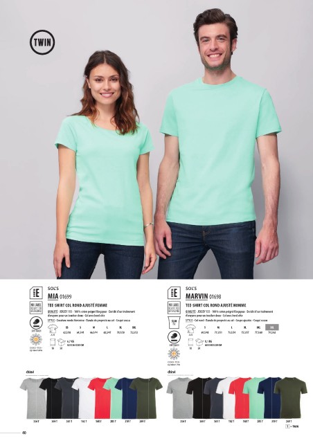 QUALITÉ - JERSEY 155 - 100% coton peigné Ringspun - Enrichi d’un traitement d’enzyme pour un toucher doux - Col avec bord côte