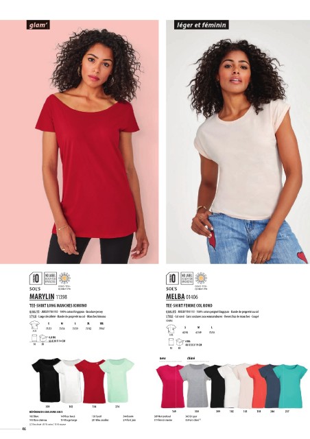 QUALITÉ - JERSEY FIN 115 - 100% coton Ringspun - Encolure jersey STYLE - Large décolleté - Bande de propreté au col - Manches kimono