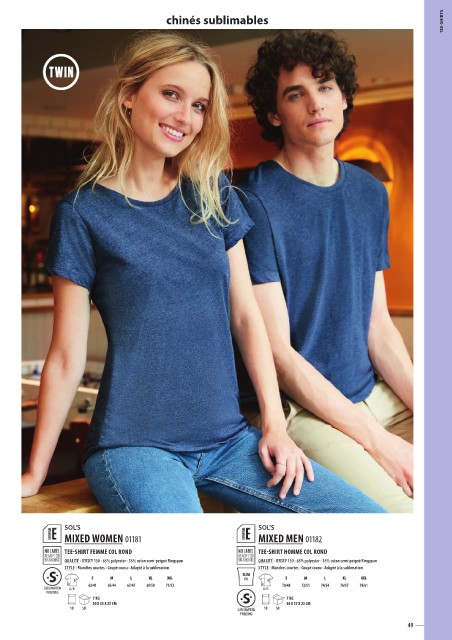 QUALITÉ - JERSEY 150 - 65% polyester - 35% coton semi-peigné Ringspun STYLE - Manches courtes - Coupé cousu - Adapté à la sublimation