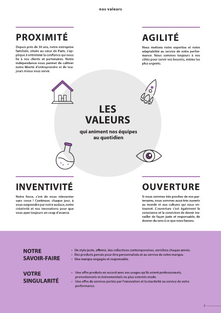 • Un style juste, affirmé, des collections contemporaines, enrichies chaque année. • Des produits pensés pour être personnalisés et au service de votre marque.