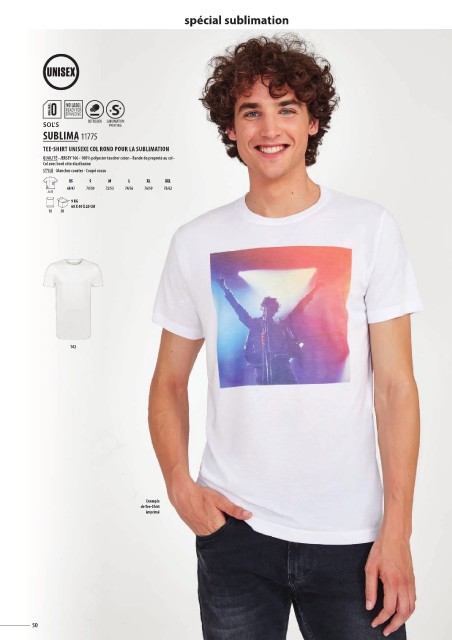 TEESHIRT UNISEXE COL ROND POUR LA SUBLIMATION