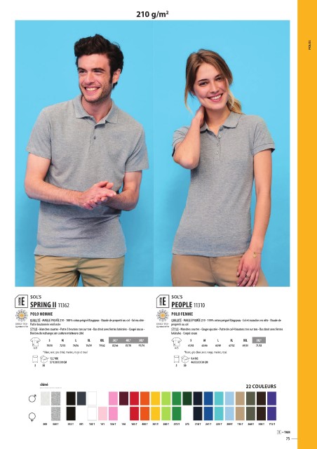 QUALITÉ - MAILLE PIQUÉE 210 - 100% coton peigné Ringspun - Col et manches en côte - Bande de propreté au col