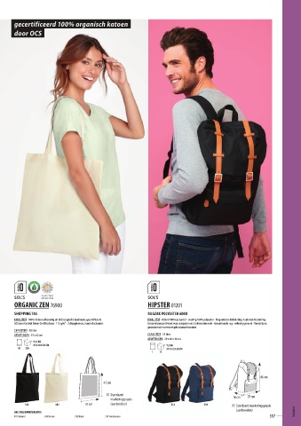KWALITEIT - 100% Katoen afkomstig uit de biologische landbouw, gecertificeerd KWALITEIT - Oxford 100% polyester - voering 100% polyester - Magnetische kliksluiting 1 zak met ritssluiting -