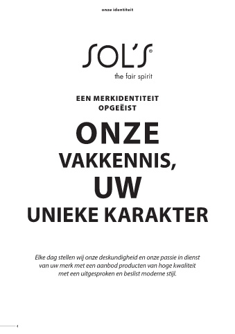 onze identiteit EEN MERKIDENTITEIT OPGEËIST ONZE VAKKENNIS, UW UNIEKE KARAKTER Elke dag stellen wij onze deskundigheid en onze passie in dienst van uw merk met een aanbod producten van hoge kwaliteit met een uitgesproken en beslist moderne stijl. 4