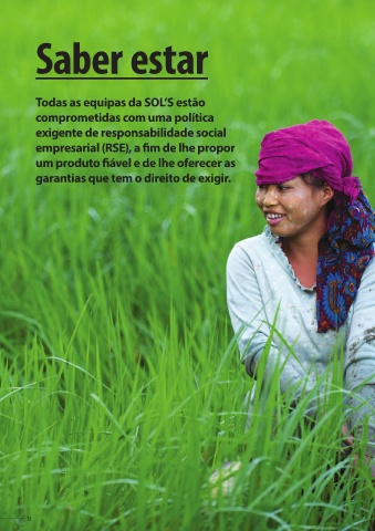 Saber estar Todas as equipas da SOL’S estão comprometidas com uma política exigente de responsabilidade social empresarial (RSE), a fi m de lhe propor um produto fi ável e de lhe oferecer as garantias que tem o direito de exigir. 12