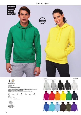 QUALIDADE - MALHA ESCOVADA 320 - Interior cardado - 50% algodão - 50% poliéster - Punhos e parte