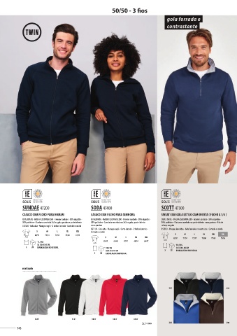 50% poliéster - Elastano canelado 2x2 na gola, punhos e parte inferior 50% poliéster - Canelado em elastano 2x2 na gola, parte inferior 50% poliéster - Elastano canelado na parte inferior e nos punhos - Fita de