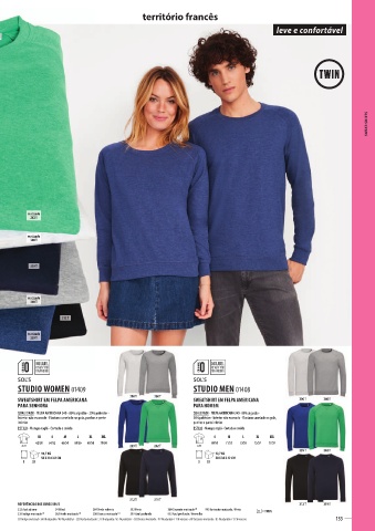 (1) Indigo matizado : 60 % algodão / 40 % poliéster - (2) Verde matizado : 35 % algodão / 65 % poliéster - (3) Branco matizado : 99 % algodão / 1 % viscose - (4) Cinzento matizado : 85 % algodão / 15 % viscose 153