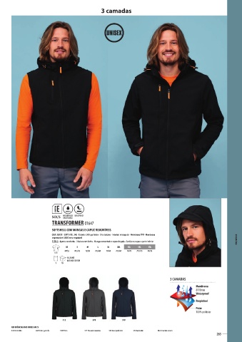 QUALIDADE - SOFTSHELL 340 - Exterior: 95% poliéster - 5% elastano - Interior: micropolar - Membrana TPU - Membrana