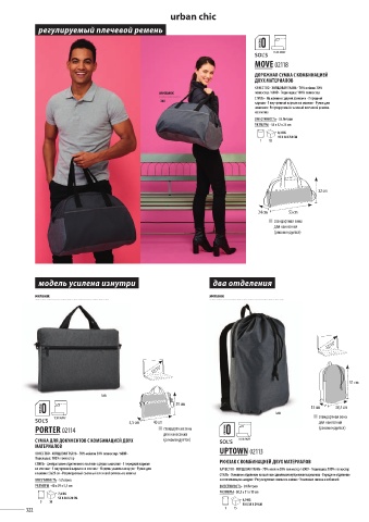ношения: 3х29 см - Регулируемый съемный плечевой ремень из хлопка СТИЛЬ - Основное отделение на молнии с двойным внутренним карманом - Переднее отделение