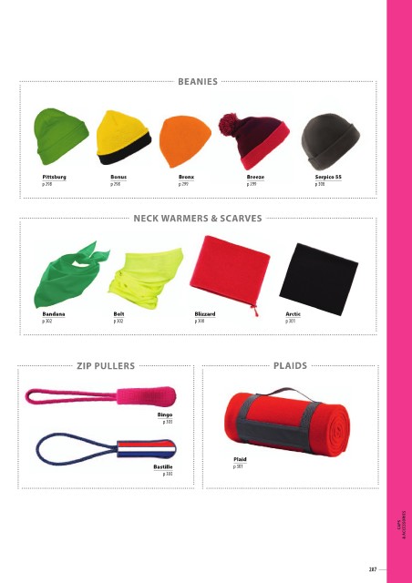 BEANIES Pittsburg p 298 Bronx Breeze p 299 p 299 NECK WARMERS & SCARVES Bonus p 298 Bolt p 302 ZIP PULLERS Serpico 55 p 300 Bandana p 302 Blizzard p 300 Arctic p 301 PLAIDS Bingo p 303 Bastille p 303 Plaid p 301 287 CAPS & ACCESSORIES