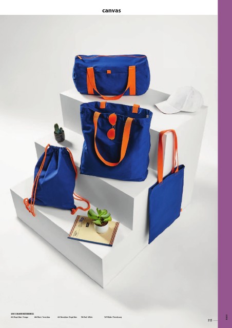 canvas SOL’S COLOUR REFERENCES 885 Royal blue / Orange 886 Black / Neon lime 887 Neon lime / Royal blue 908 Red / White 989 White / French navy 315 BAGS